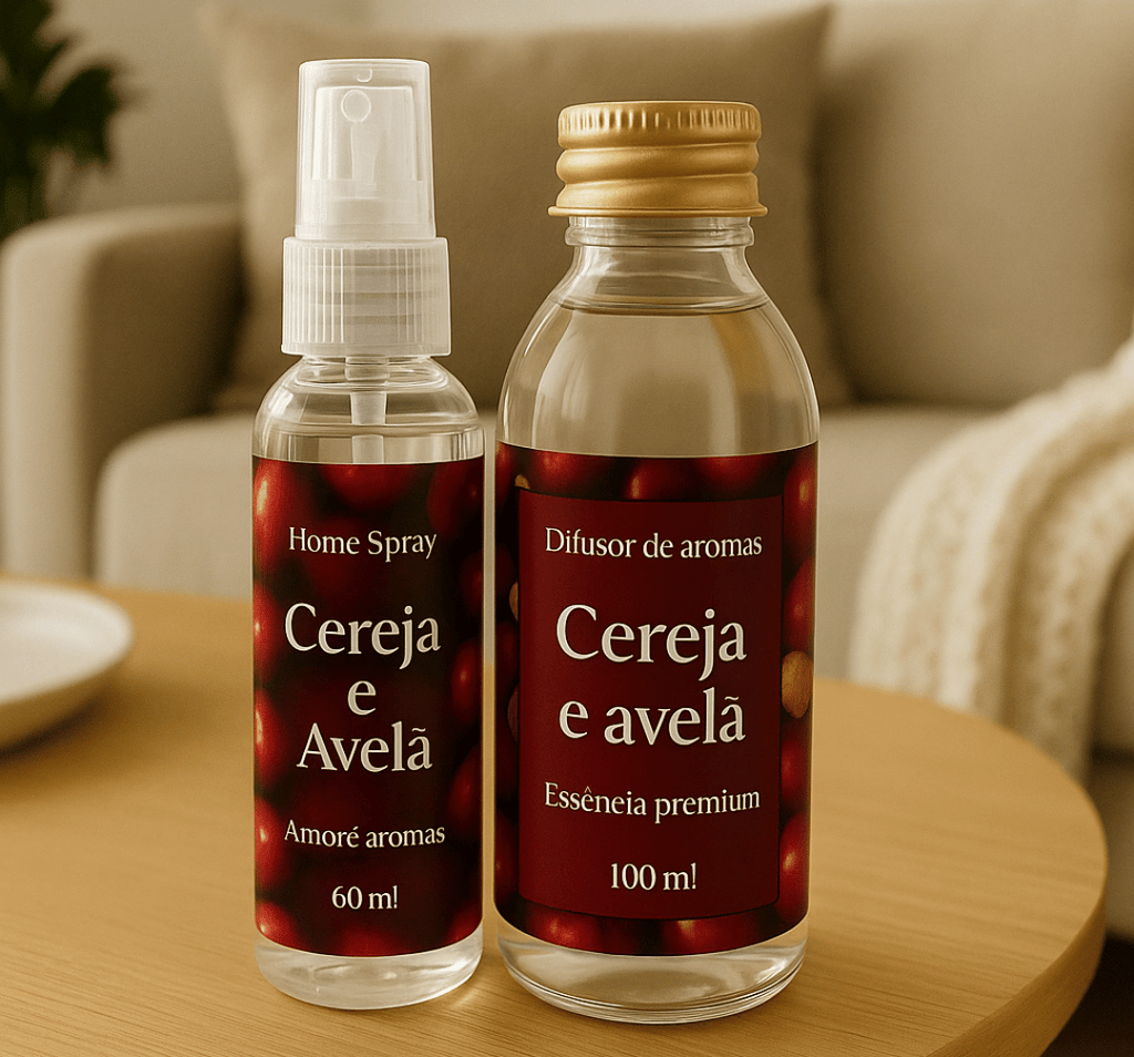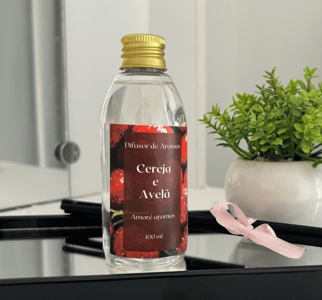 ✔ Difusor de Varetas Cereja & Avelã (100ml) – Aroma contínuo e envolvente para o ambiente.