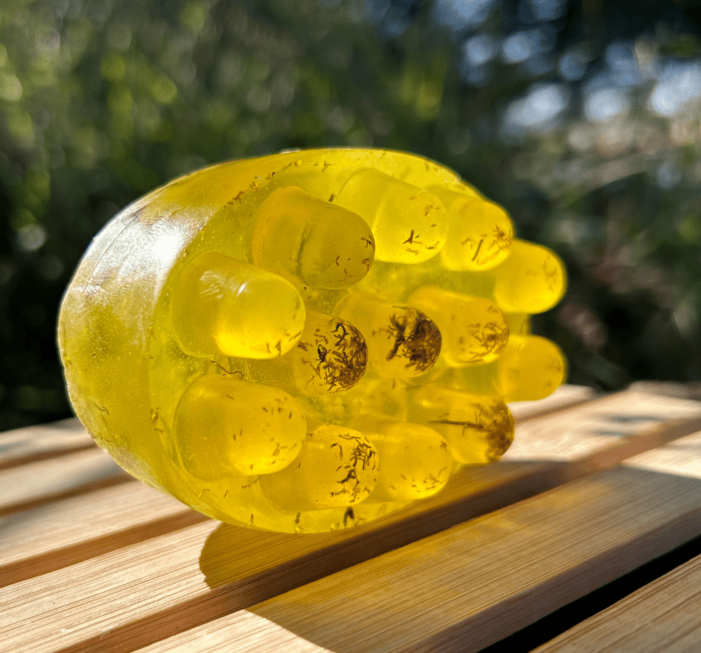 A camomila, conhecida por suas propriedades calmantes e anti-inflamatórias, ajuda a aliviar irritações e vermelhidão, deixando sua pele macia e equilibrada. Cada barra é cuidadosamente produzida à mão, garantindo um produto de alta qualidade com ingredientes naturais que nutrem sua pele.